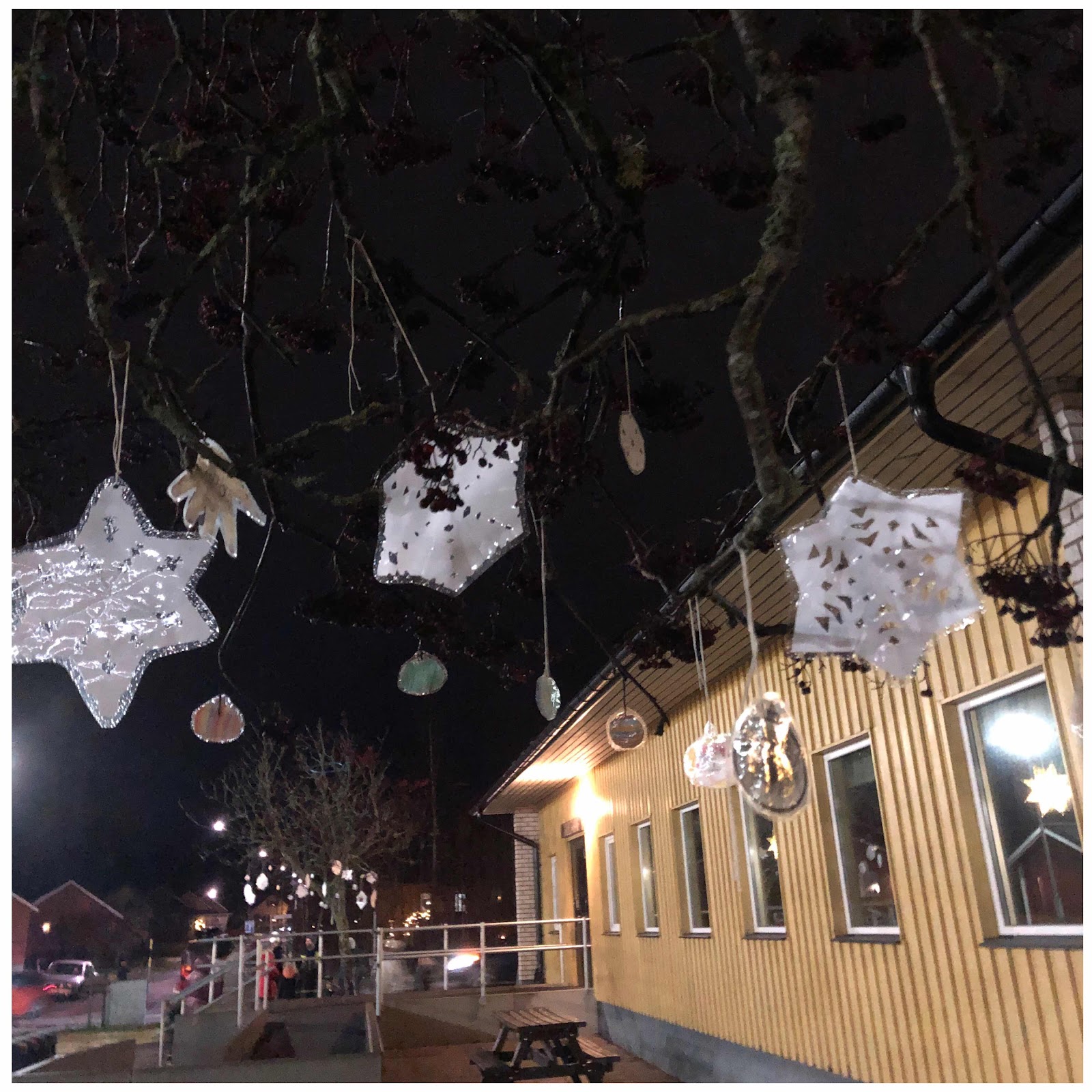 I torsdags hade vi julfest med eleverna på skolan. Treorna gick luciatåg och övriga klasser sjöng varsin sång. Det var jättefint! Vi hade hängt upp snöflingor i träden, det blev stämningsfullt!